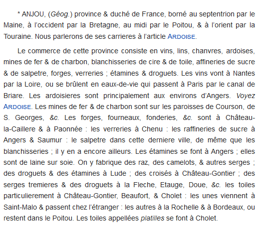 Extraits de l'Encyclopédie ou Dictionnaire raisonné des sciences, des arts et des métiers, comprenant dix-sept volumes plus onze volumes de planches édités de 1751 à 1772, mis en ordre et publié par Denis Diderot et d'Alembert (notice BnF).
