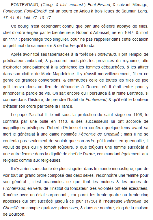 Extraits de l'Encyclopédie ou Dictionnaire raisonné des sciences, des arts et des métiers, comprenant dix-sept volumes plus onze volumes de planches édités de 1751 à 1772, mis en ordre et publié par Denis Diderot et d’Alembert (notice BnF).