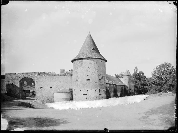 Source : Ministère de la Culture (Médiathèque du patrimoine et de la photographie), Base Mémoire - Château de Saint-Hénis : Remparts côté campagne, notice AP67L00341.