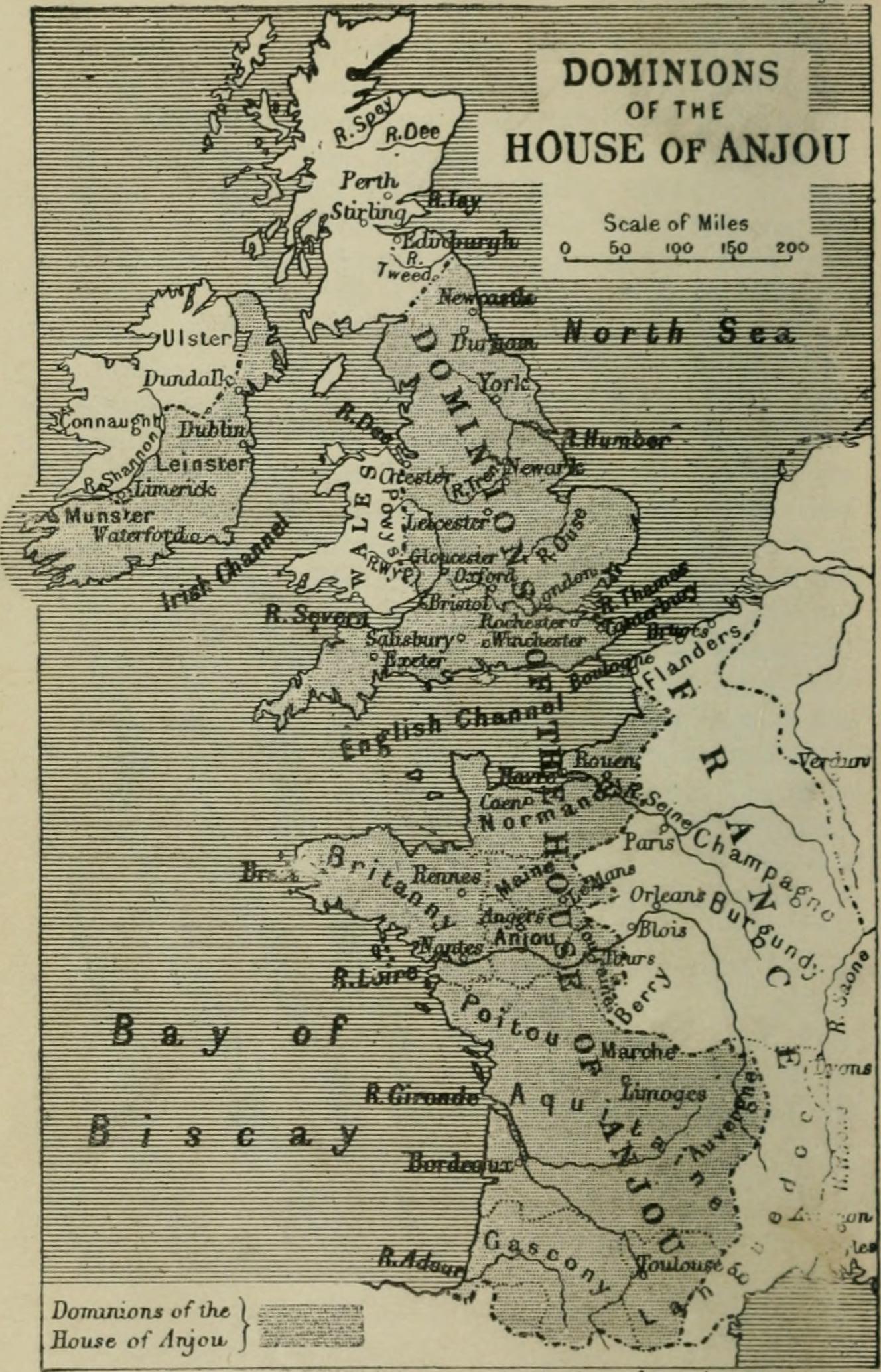 Carte d'influence de la Maison d'Anjou au XIIe siècle (Dominions of the house of Anjou).