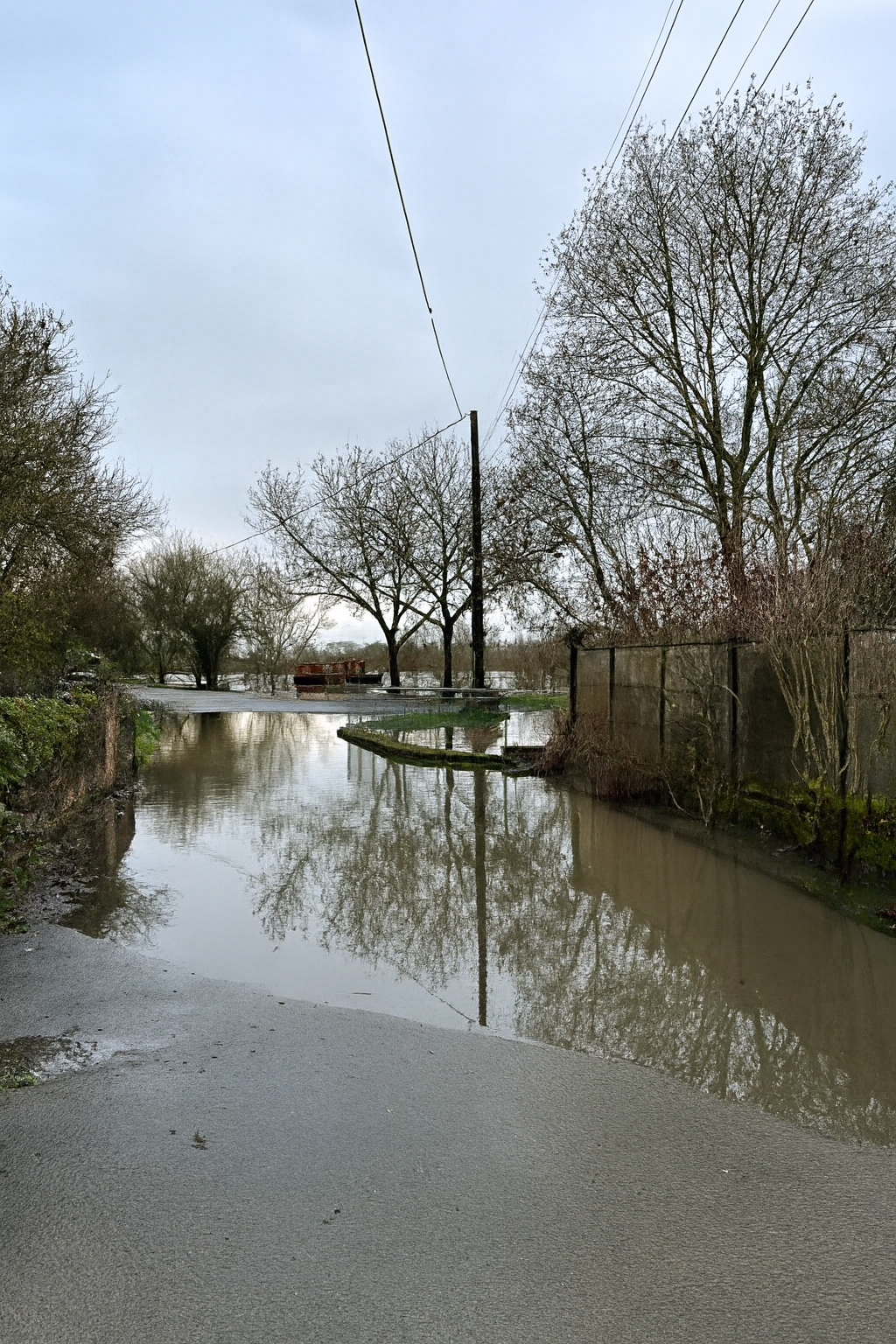 Crue en février 2026 à Chalonnes-sur-Loire, par débordement du fleuve.