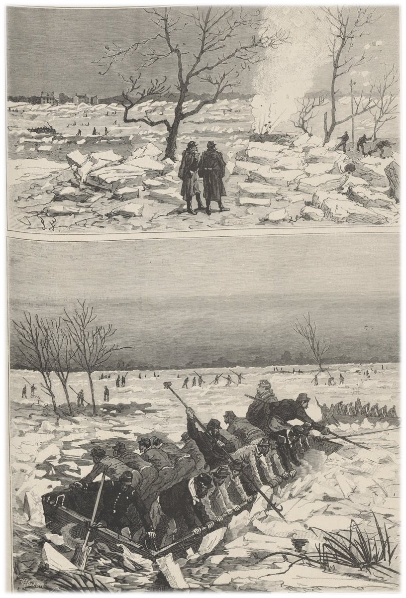 Le Monde illustré, 24e année, numéro 1191, du 24 janvier 1880, page 53. « Les banquises de Saumur. – Les artificiers faisant sauter la glace à la dynamite en face de Souzay. – Les Pontonniers brisant la glace en face de Dampierre pour le canal de secours. », dessins de M. Férat d'après le croquis de M. Scott, directeur Paul Dalloz.
