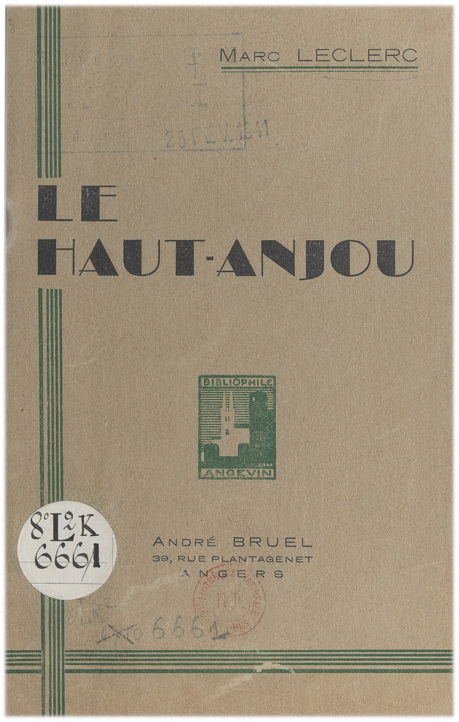 Marc Leclerc (1874-1946), Le Haut-Anjou, A. Bruel (Angers), 1941 (lire). Couverture.