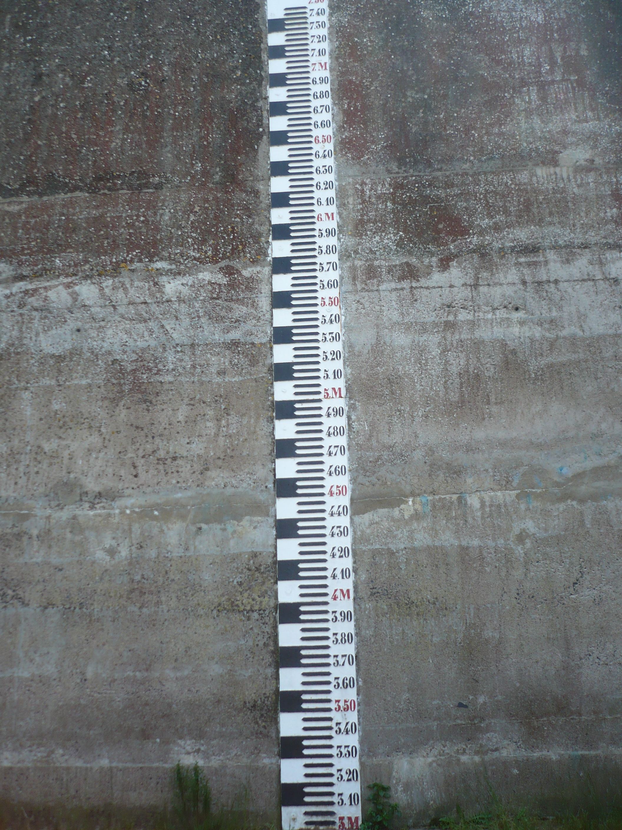 Source : Wikimedia Commons, Saint-Florent - Echelle de crue, de Romain Bréget, le 5 mai 2011. Le détenteur du droit d'auteur a publié cette œuvre sous la licence CC-BY-SA.