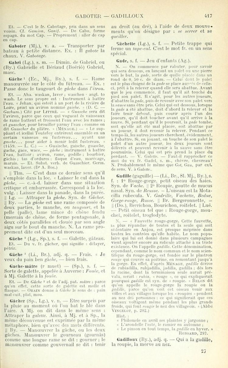 Extrait de l'ouvrage de A.-J. Verrier et R. Onillon, Glossaire étymologique et historique des parlers et patois de l'Anjou, Germain & Grassin, 1908, tome premier.