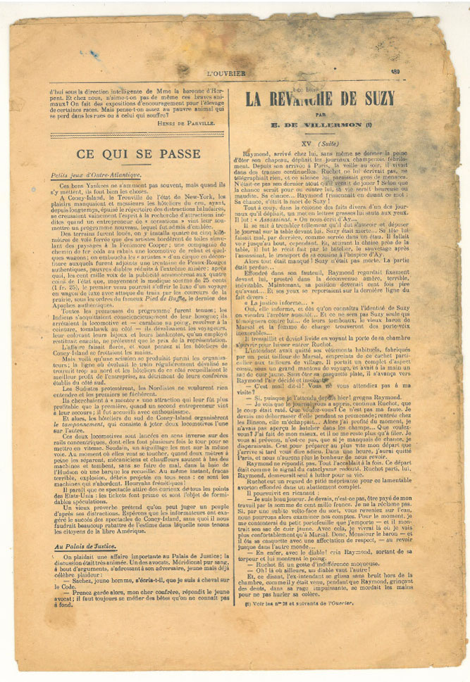 L'ouvrier - Journal illustré paraissant le Mercredi et le Samedi. Librairie Blériot et Henri Gautier (Paris). Journal catholique paru de 1861 à 1920, créé à Paris par l’abbé Geslin de Kersolon avec son père. Illustré de gravures représentant des scènes de vie.