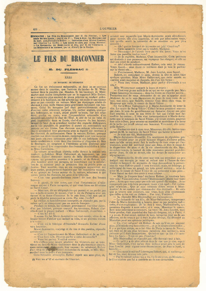 L'ouvrier - Journal illustré paraissant le Mercredi et le Samedi. Librairie Blériot et Henri Gautier (Paris). Journal catholique paru de 1861 à 1920, créé à Paris par l’abbé Geslin de Kersolon avec son père. Illustré de gravures représentant des scènes de vie.